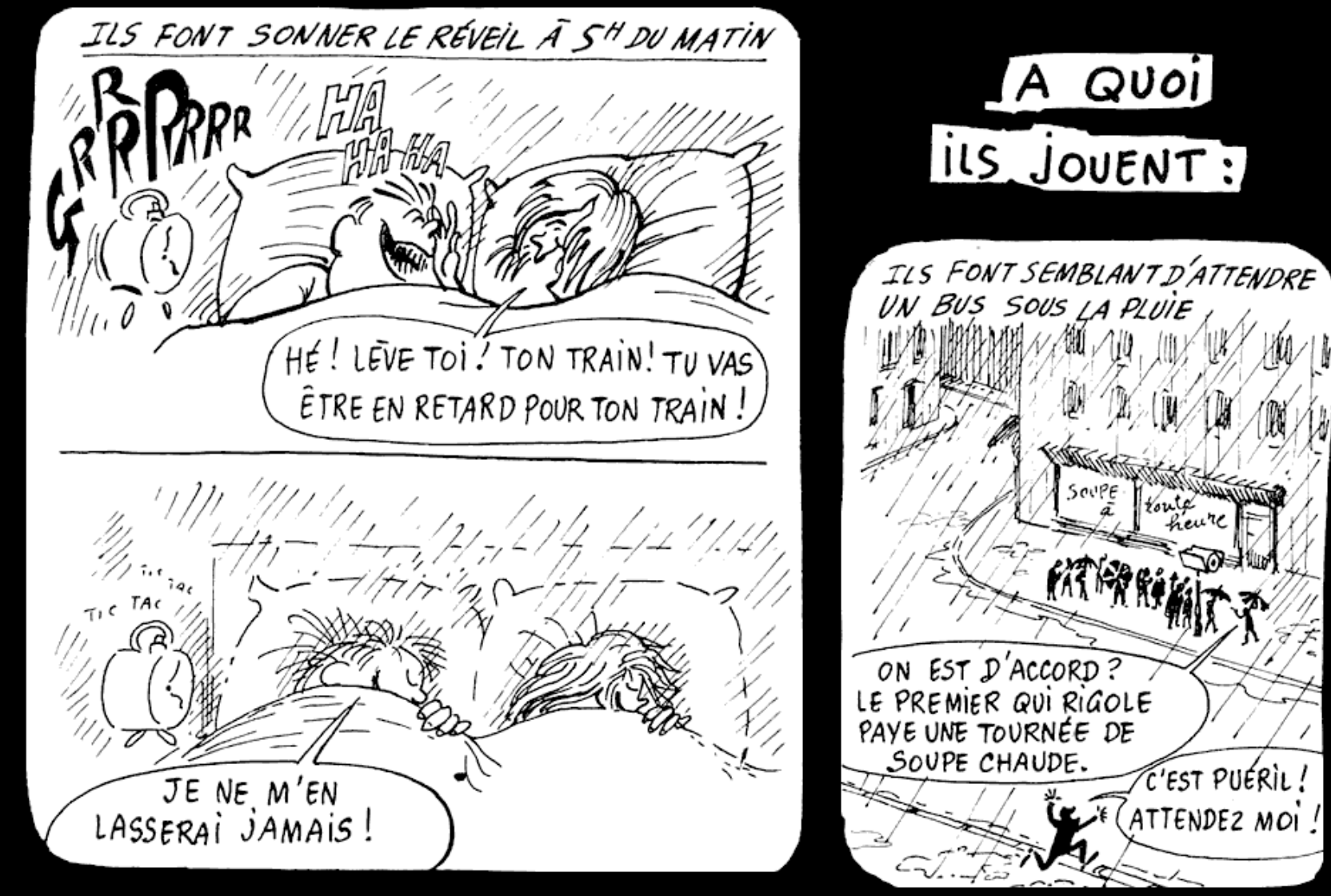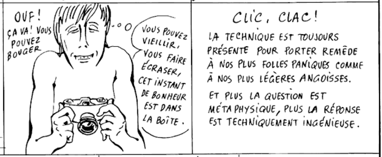Si vous avez la flemme, voici quelques screenshots qui montrent l’absolue perfection poétique et la pertinence inégalée, même en 2024, de cet objet improbable (toutes ces cases, dans la BD, sont sur l’avant : la vie avant qu’on arrête tout) :