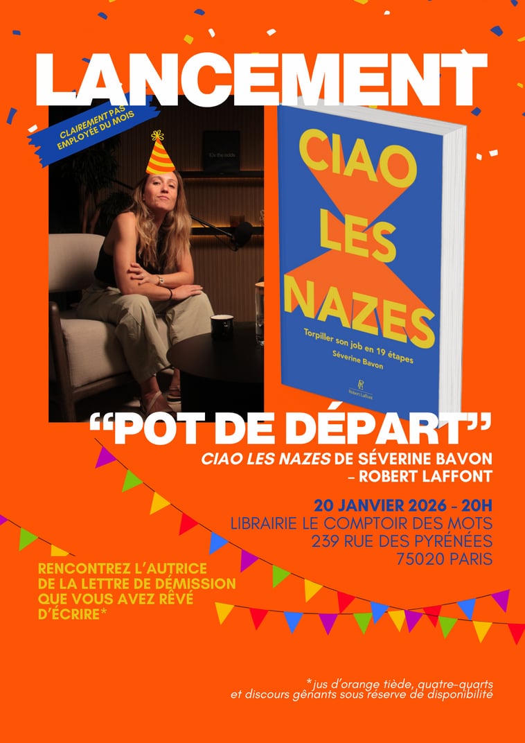 Vous n’êtes pas à Paris, pas dispo ou pas motivé·es pour venir le 20 janvier ? Ne vous inquiétez pas : si ça chauffe des libraires, je me tiens prête à faire une petite tournée interdépartementale dans les prochains mois. N’hésitez pas à chauffer votre libraire. Enfin, vous voyez ce que je veux dire. Et si vous n’avez pas du tout envie de sortir de chez vous mais que vous n’en avez pas encore marre de moi, vu comment ça s’annonce, vous risquez de me voir et m’entendre ici et là dans les prochains temps, tiens par exemple chez Programme B où j’ai discuté avec Thomas Rozec de Ciao les nazes et de ce qui est naze dans le taf.