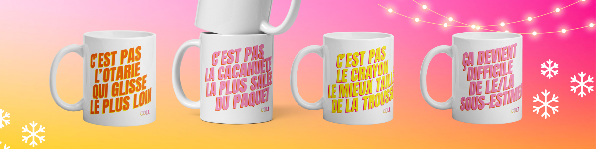 🎅 Message de service-caché : en rade d’inspi pour le Secret Santa de la boîte ? Y’a du nouveau sur la boutique CDLT, puisqu’en plus des bangers du Secret Santa 2023 comme le mug “Sauf erreur de ma part”, 7 nouvelles tasses passives-agressives font leur entrée dans le e-shop qui est là si vous voulez jeter un oeil (la livraison est rapide ça part en 2 jours en général)